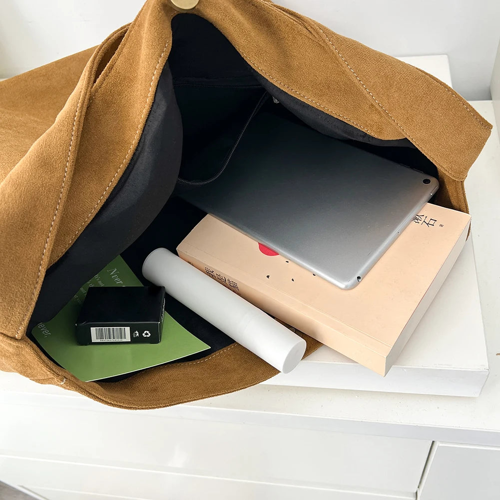 Women Large Capacity Shoulder Bag Stylish Tweed Fabric Casual Handbag Fashion Retro Classic Purse for Daily Office Use Solid Color Handbag